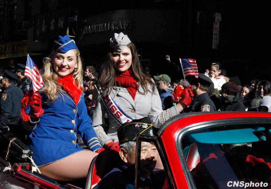 虎年紐約華埠慶祝農(nóng)歷新年“重頭戲”花車大游行21日登場,吸引超過10萬人圍觀共同狂歡,成為歷年來參加人數(shù)最多的一次花車游行。12輛盛裝花車以及數(shù)千人的表演團(tuán)隊(duì)沿著華埠最熱鬧的數(shù)十條街道一邊行進(jìn)一邊表演,滿天彩帶飄揚(yáng),場面熱鬧非常。圖為表演團(tuán)隊(duì)在行進(jìn)中。中新社發(fā) 魏晞 攝