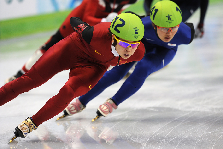 當?shù)貢r間2月24日,溫哥華冬奧會女子短道速滑3000米接力A組決賽中,中國隊王濛、周洋、孫琳琳、張會四朵金花聯(lián)袂出擊,最終將金牌歸入中國隊囊中。圖片來源:中國新聞網(wǎng)