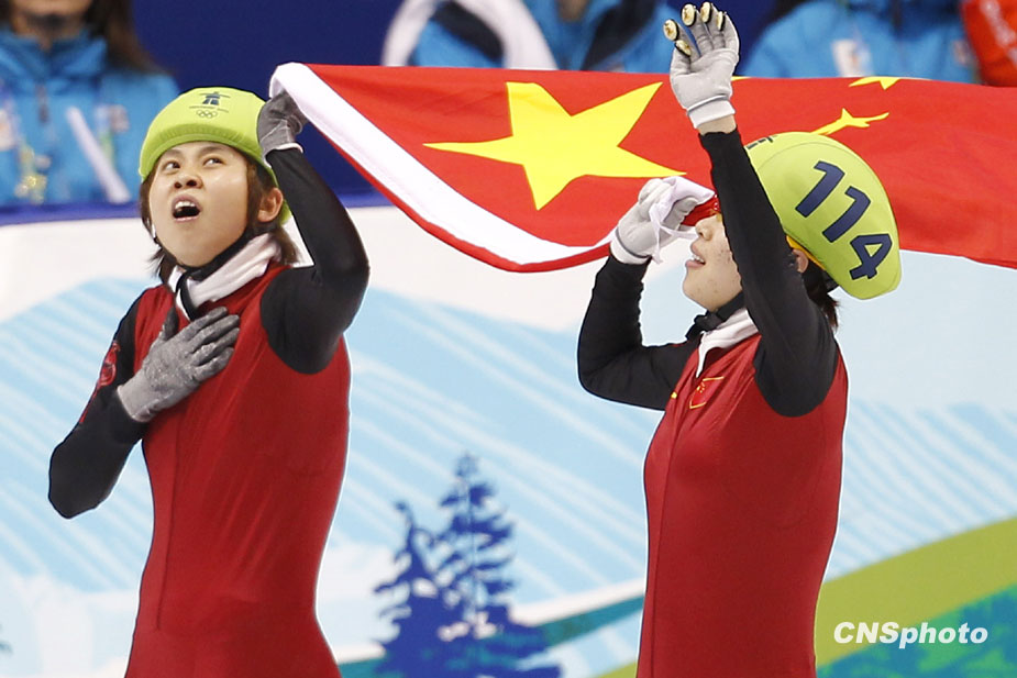 北京時間27日中午,中國選手王濛在2010年溫哥華冬奧會短道速滑女子1000米的決賽中摘得金牌。圖片來源:中國新聞網