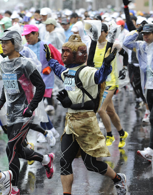 2月28日,日本東京馬拉松賽舉行,超過30000名愛好者參加了此次馬拉松賽。很多參賽者的怪異服裝成為了賽場(chǎng)上的一道風(fēng)景。