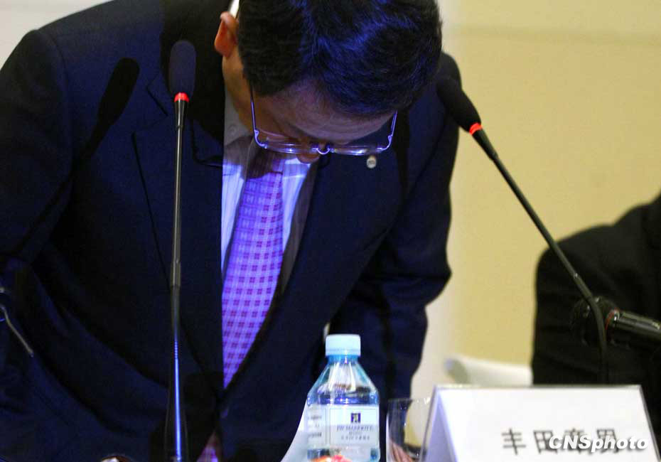 3月1日,豐田汽車總裁豐田章男今日在北京舉行記者會,介紹了豐田汽車大規(guī)模召回的原因及處理措施,并向中國消費(fèi)者鞠躬道歉。