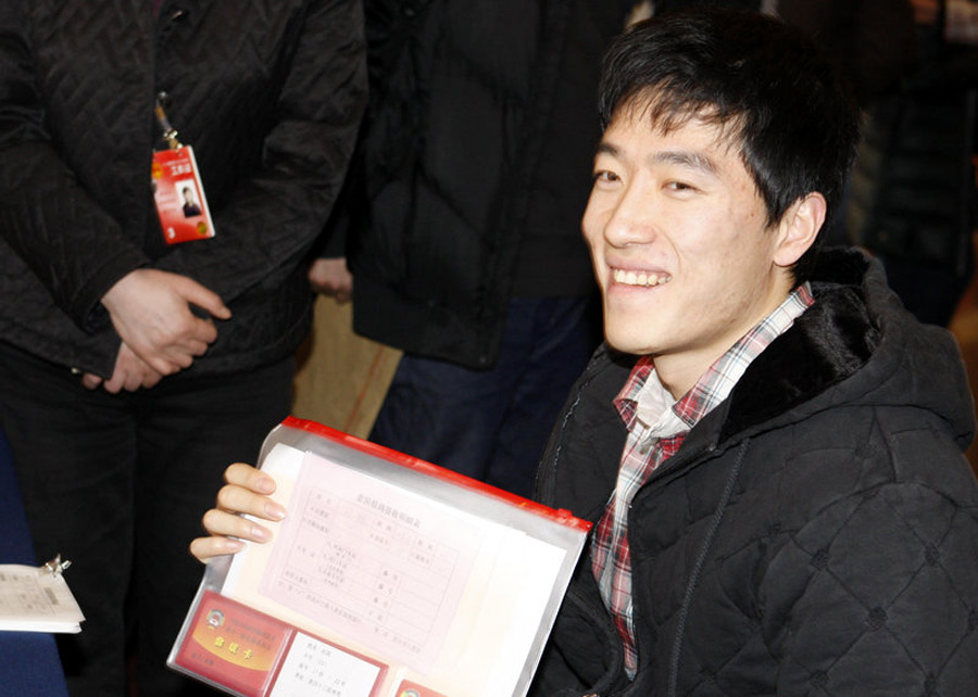 3月2日,參加全國政協的委員劉翔趕赴北京國際飯店報到。新宇 攝