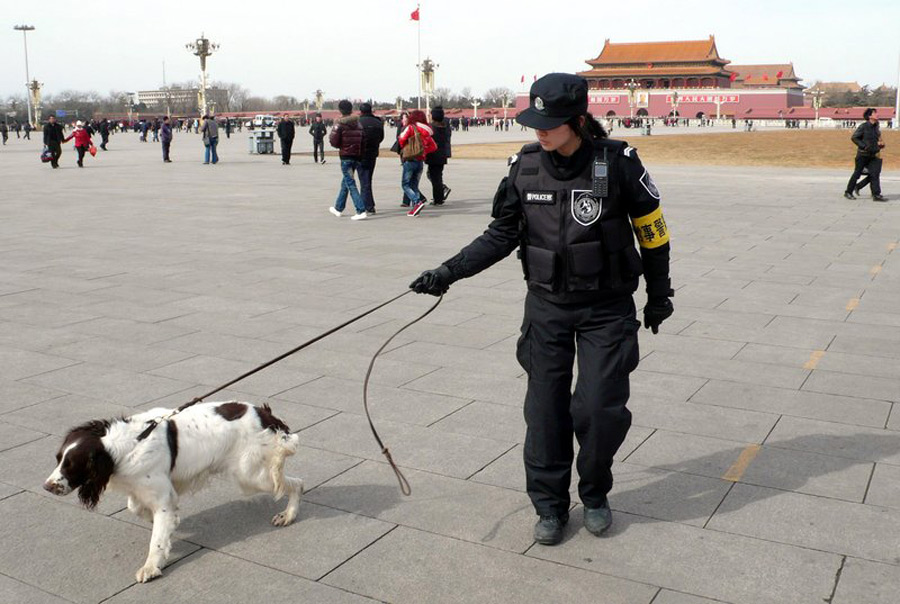 為確保兩會的順利召開,北京市啟動了一級安保護駕"兩會",同時動員組織了治安巡邏隊、治安志愿者、單位內部保衛人員、社區保安等群防群治力量70萬人,形成專群結合、組織嚴密的防控網絡。天安門附近是兩會安保的重點區域。charlie 攝
