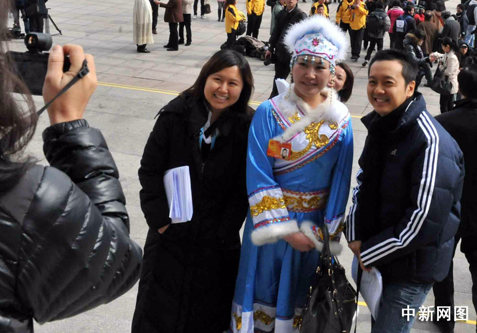 十一屆全國人大三次會(huì)議3月5日在北京開幕,各民族人大女代表的服飾靚麗多彩,在天安門廣場前大展英姿。 中新社記者 賈國榮 攝
