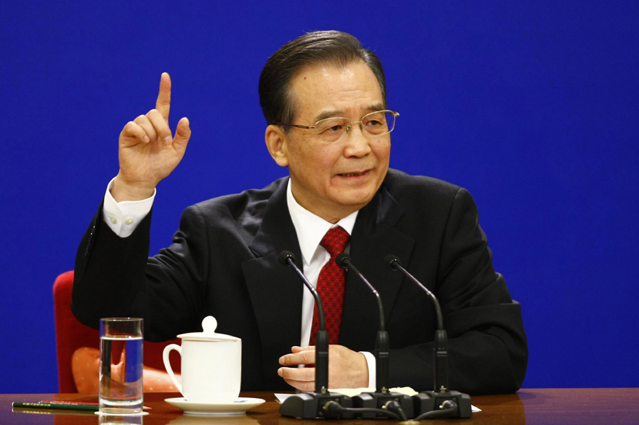 3月14日上午,國務院總理溫家寶在人民大會堂三樓金色大廳與采訪十一屆全國人大三次會議的中外記者見面并回答記者提出的問題。中新社記者 杜洋 攝 圖片來源:中國新聞網