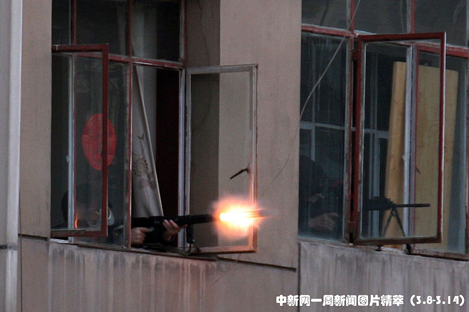 周四,甘肅蘭州,警方向槍殺特警嫌犯的藏匿點開火。當天,轟動全國的蘭州槍擊案嫌犯付曉霖被警方發(fā)現(xiàn),嫌犯躲進一居民樓內(nèi)。雙方對峙長達11個小時,期間人質(zhì)被解救,最終特警破門進入嫌犯所在屋內(nèi)將其擊斃。圖片來源:中國新聞網(wǎng)