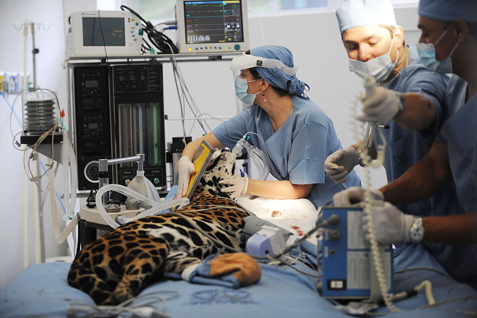 3月13日,在哥倫比亞麥德林附近的一個獸醫診所,一只雌性美洲虎在接受牙齒手術。圖片來源:中國新聞網