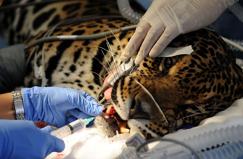 哥倫比亞獸醫為美洲虎實施牙齒手術