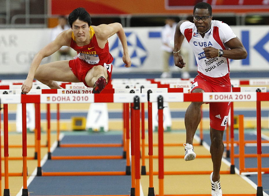 在14日晚間結束的多哈室內田徑世錦賽60米欄決賽中,劉翔僅僅以7秒65的成績獲得第七名。古巴選手羅伯斯則以7秒34成績奪得冠軍并打破室內世錦賽賽會紀錄。圖片來源:中國新聞網