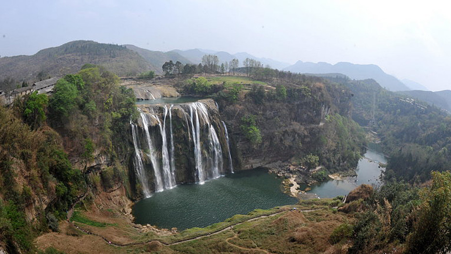 3月21日,受干旱影響的中國第一大瀑布貴州黃果樹瀑布纖弱細腰的身材。貴州省持續干旱,不僅造成農作物受災、人畜飲水困難,一些旅游景點還受到波及。因久旱無雨、上游來水大幅減少,黃果樹大瀑布出現“瘦身”景觀,過去氣勢磅礴的大瀑布宛如纖弱細腰的少女。吳東俊 攝