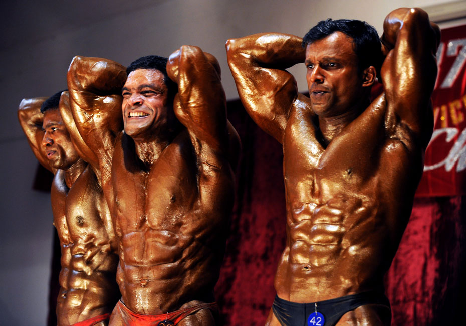 3月24日,印度舉辦第37屆健美錦標賽,來自陸軍、空軍和海軍的防務人員在健美比賽上大秀肌肉展現男性魅力。圖片來源:中國新聞網