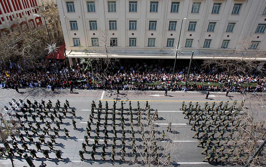 3月25日,在希臘首都雅典的憲法廣場,人們參加獨立戰爭紀念日慶祝活動。圖片來源:中國新聞網