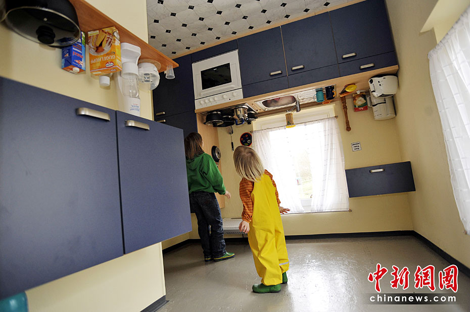 3月30日,德國蓋托夫市“瘋狂的房子”面向公眾開放。該房屋整個顛倒里面的家具也是被釘在屋頂上的。圖片來源:中國新聞網(wǎng)