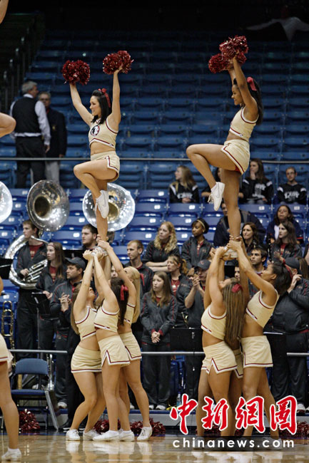 啦啦隊的歷史可追溯到原始部落時期,戰士們狩獵凱旋歸來時,人們給予歡呼及鼓勵的動作。最初的拉拉隊要追溯到19世紀80年代的美國大學校園,當時的形式是在大學里的橄欖球賽上,一位領隊站在一大群人前面領導他們為自己的球隊吶喊助威。圖片來源:中國新聞網