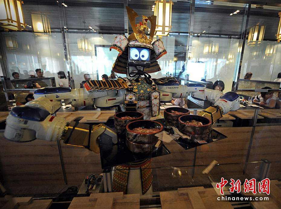 這家日本餐館是泰國首家擁有機器人服務(wù)員的餐館,顧客可以通過電子觸摸屏進行點菜,機器人則會帶來相應(yīng)的服務(wù)。機器人服務(wù)員能有節(jié)奏地跳舞,還可以自動到餐桌為客人收走空盤子。