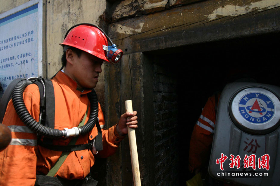 4月3日,華晉焦煤公司王家?guī)X礦透水事故第七天。下午1時許,汾西礦山大隊7名隊員與鄉(xiāng)寧救護隊6名隊員一共13名搜救隊員攜帶各種急救設(shè)備配合潛水員下井進行搜救。搜救隊員在接受記者采訪時,介紹他們主要工作是配合潛水員搜救,并保護潛水員,發(fā)現(xiàn)被困人員時,緊急救援并通知井上人員進行救治,急救車已在離井口30米處待命。中新社發(fā) 張云 攝