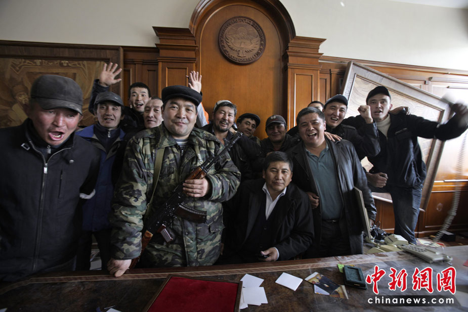 吉爾吉斯斯坦7日發(fā)生大規(guī)模騷亂,反對派示威者占領(lǐng)了議會大樓,8日,總統(tǒng)府也被示威者占領(lǐng)。圖為示威者進(jìn)入總統(tǒng)巴基耶夫的內(nèi)閣會議室。