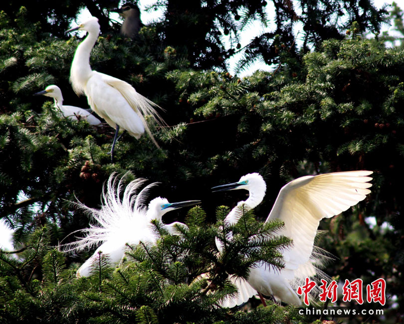 4月9日,一對白鷺在象山森林公園歡躍飛舞,譜寫一曲春日戀歌。四月,正值芳草萋萋,萬物生機勃勃。萬余只白鷺陸續抵達江西南昌象山森林公園棲息,繁衍后代,成為鄱陽湖濕地的一大獨特景觀, 吸引眾多攝影愛好者前來拍攝和觀賞。孫永勝 胡國林 攝
