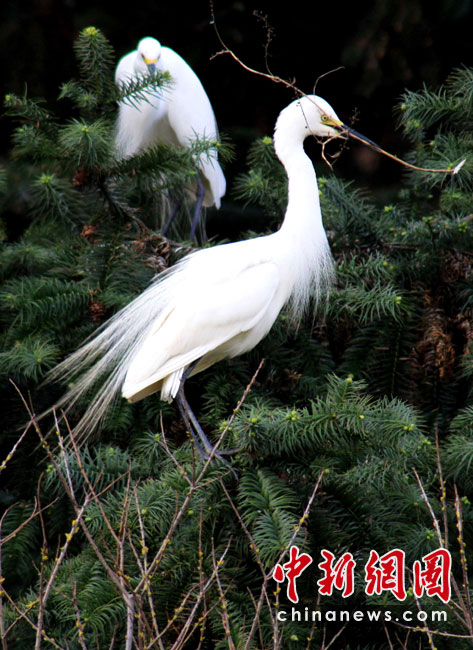 4月9日,一對白鷺在象山森林公園歡躍飛舞,譜寫一曲春日戀歌。四月,正值芳草萋萋,萬物生機勃勃。萬余只白鷺陸續抵達江西南昌象山森林公園棲息,繁衍后代,成為鄱陽湖濕地的一大獨特景觀, 吸引眾多攝影愛好者前來拍攝和觀賞。孫永勝 胡國林 攝
