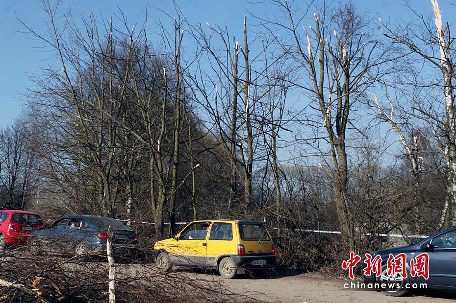 4月11日,波蘭總統卡欽斯基專機在俄羅斯斯摩棱斯克軍用機場墜毀地點附近的道路開通,但是警戒線核心區仍然關閉。俄波調查人員正在現場工作。圖片來源:中國新聞網