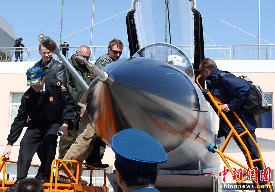 4月13日,47國駐華武官參觀了空軍航空兵某師新換裝的殲十戰機飛行表演,并登上駕駛艙與飛行員零距離接觸。圖片來源:中國新聞網