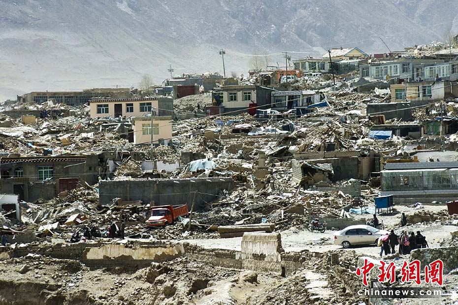 圖為俯瞰受災的玉樹縣結古鎮。中新社發 張守國 攝