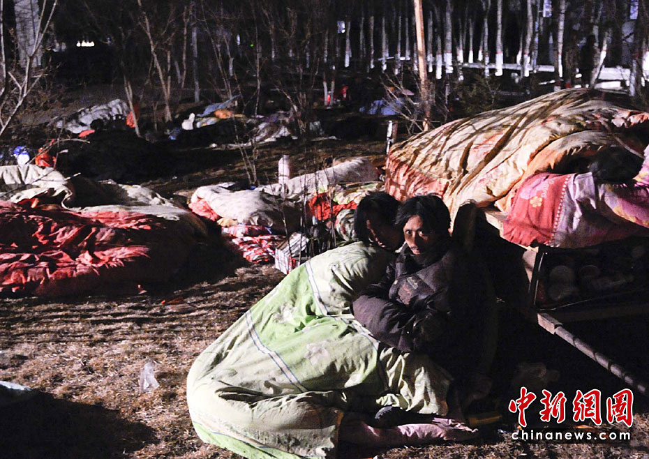 圖為4月15日凌晨,青海玉樹地震受災民眾在露天休息。中新社發 廖攀 攝
