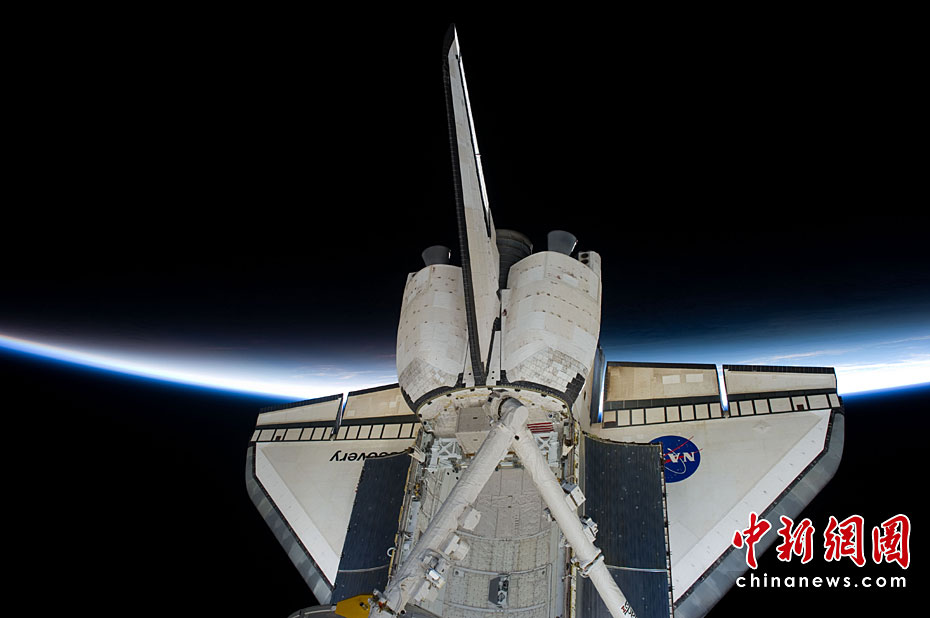 4月13日,美國航天局發布消息說,發現號航天飛機兩名宇航員完成了“發現號”本次升空以來的第三次,也是最后一次太空行走。圖片來源:中國新聞網