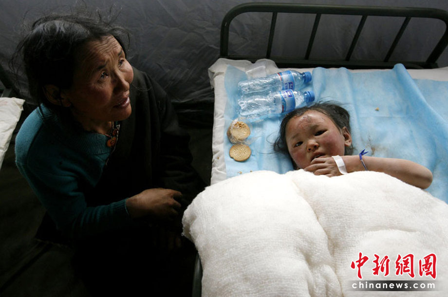 圖為2010年4月15日,青海玉樹(shù),7歲女孩卓瑪在廢墟中埋了30多個(gè)小時(shí)生還。青友 攝
