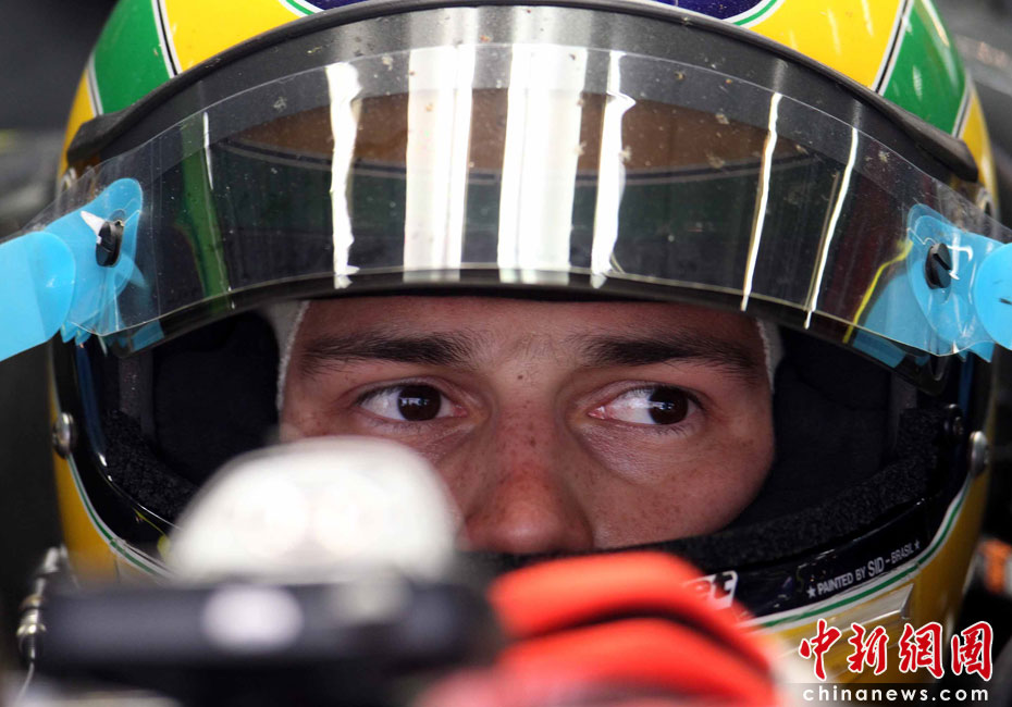 4月16日,2010國際汽聯F1世界錦標賽上海站在上海國際賽車場開始車手第一、第二次練習賽。圖為代表印度車隊出戰的巴西車手塞納。中新社記者 任晨鳴 攝