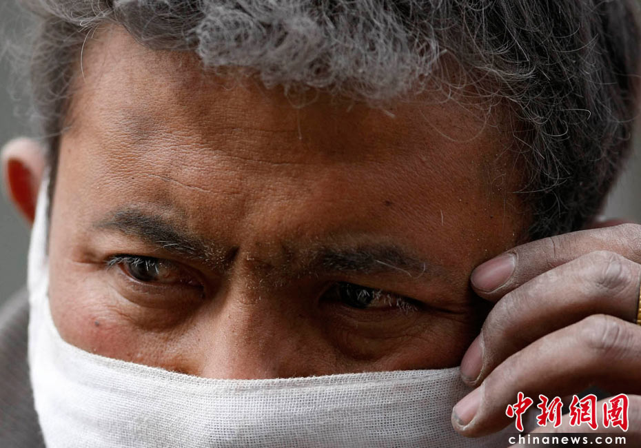 2010年4月16日,青海玉樹(shù)藏族自治州玉樹(shù)縣結(jié)古鎮(zhèn)一所中學(xué)的震災(zāi)救援現(xiàn)場(chǎng),救援人員的頭發(fā)、眉毛都落滿(mǎn)塵土。中新社發(fā) 盛佳鵬 攝