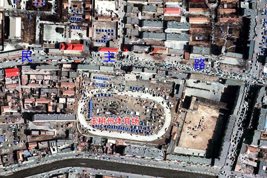 利用對(duì)地觀測(cè)中心2010年4月16日獲取的高分辨率航空遙感數(shù)據(jù),提取出玉樹州結(jié)古鎮(zhèn)城區(qū)范圍內(nèi)地震破壞最嚴(yán)重或典型地區(qū),使之與GoogleEarth中相應(yīng)位置的震前遙感衛(wèi)星數(shù)據(jù)進(jìn)行對(duì)比,直觀展現(xiàn)結(jié)古鎮(zhèn)在此次地震中的受影響程度。圖片來源:中國(guó)科學(xué)院