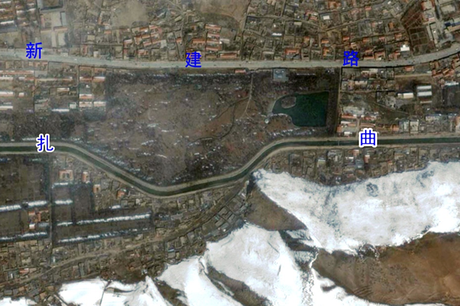 利用對(duì)地觀測(cè)中心2010年4月16日獲取的高分辨率航空遙感數(shù)據(jù),提取出玉樹州結(jié)古鎮(zhèn)城區(qū)范圍內(nèi)地震破壞最嚴(yán)重或典型地區(qū),使之與GoogleEarth中相應(yīng)位置的震前遙感衛(wèi)星數(shù)據(jù)進(jìn)行對(duì)比,直觀展現(xiàn)結(jié)古鎮(zhèn)在此次地震中的受影響程度。圖片來源:中國(guó)科學(xué)院