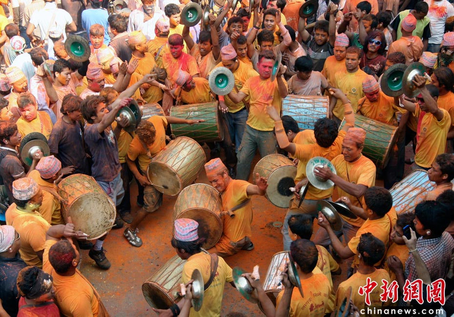 4月15日,尼泊爾迎來一年一度的傳統節日“尼歷新年”。當日全國放假一天,在加德滿都郊區人們涌上街頭潑灑紅粉慶祝新年。圖片來源:中國新聞網