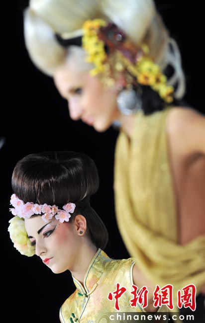 近日,第九屆“水晶天使”國際發(fā)型藝術(shù)節(jié)開幕,設計師紛紛秀出自己設計的新款發(fā)型。圖片來源:中國新聞網(wǎng)