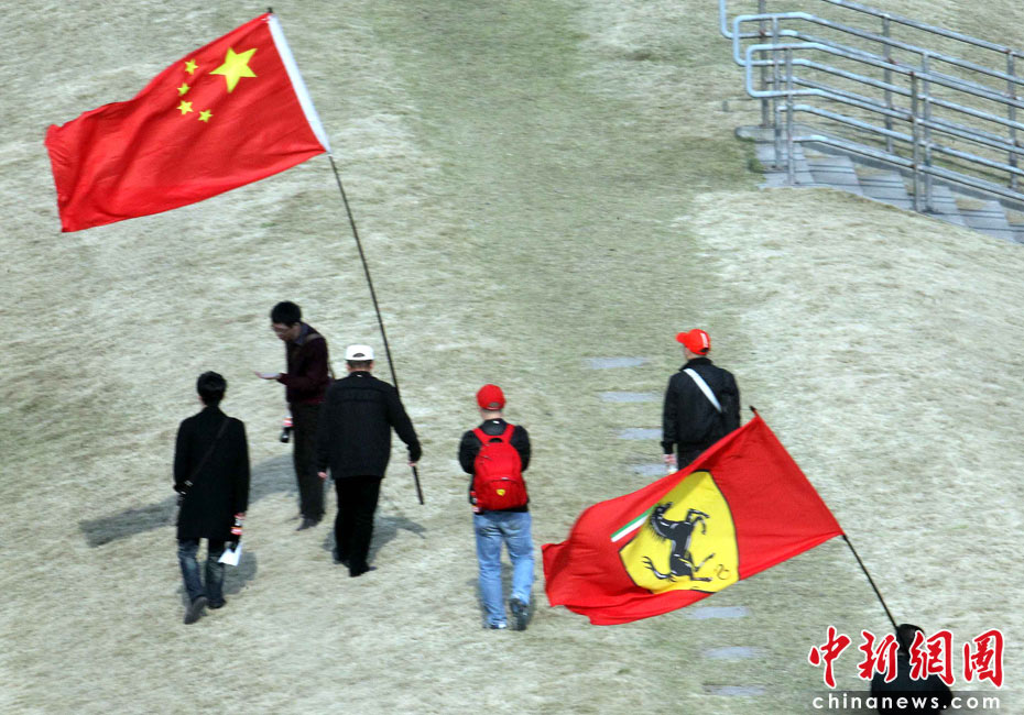 到場(chǎng)觀戰(zhàn)的中國(guó)觀眾最中意的車隊(duì)還是法拉利。中新社記者 任晨鳴 攝