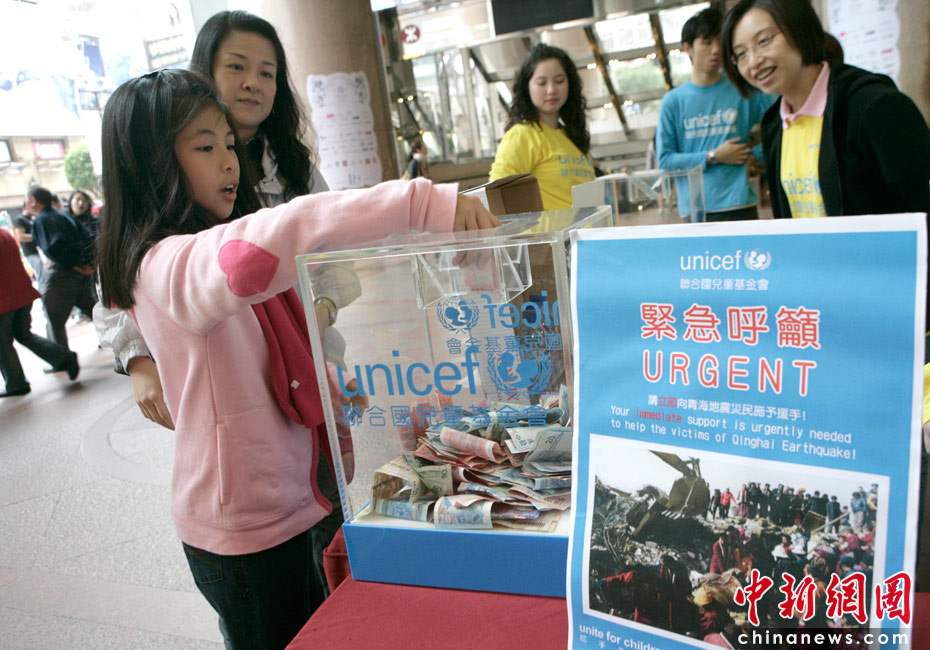 4月18日,香港市民在時代廣場募捐。4月14日,青海省玉樹藏族自治州玉樹縣發生7.1級地震,給當地人民群眾生命財產造成嚴重損失。災情牽動廣大香港同胞災情牽動廣大香港同胞的心,連日來,香港社會各界團體及市民紛紛為地震災區捐款。中新社發 張勤 攝