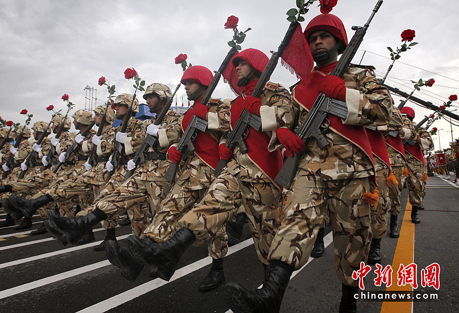 4月18日,伊朗德黑蘭舉行伊朗建軍節閱兵式。伊朗在閱兵式上展出了“力量”、“流星”和“泥石”等地對地導彈。圖片來源:中國新聞網