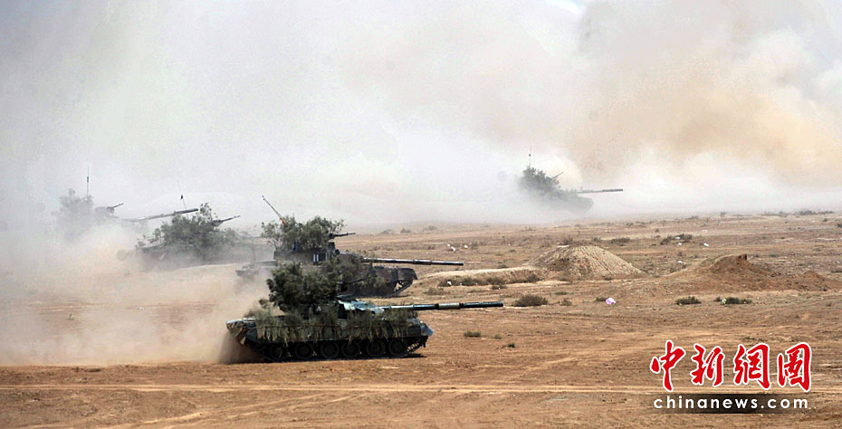 巴基斯坦軍隊4月18日出動戰機、坦克和重型火炮,在靠近印度邊界的東部沙漠地區舉行“新決心—3”軍事演習。圖片來源:中國新聞網