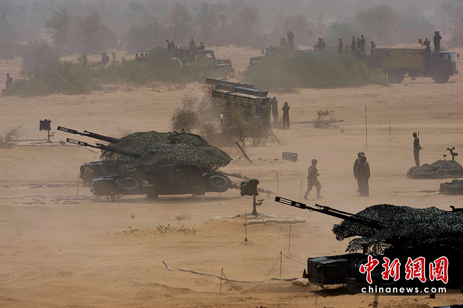 巴基斯坦軍隊4月18日出動戰機、坦克和重型火炮,在靠近印度邊界的東部沙漠地區舉行“新決心—3”軍事演習。圖片來源:中國新聞網