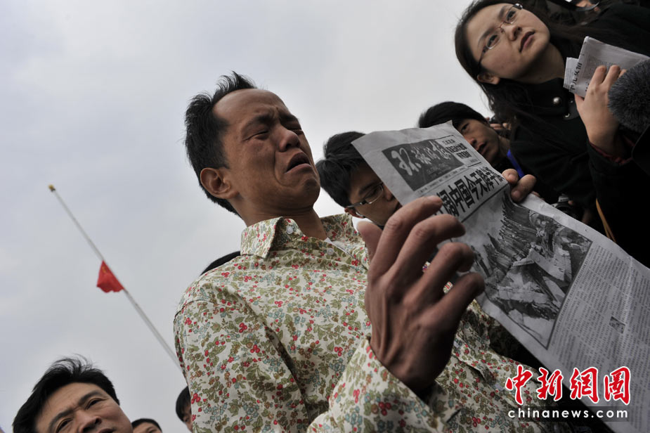 4月21日,為表達(dá)全國(guó)各族人民對(duì)青海玉樹(shù)地震遇難同胞的深切哀悼,中國(guó)國(guó)務(wù)院決定,舉行全國(guó)哀悼活動(dòng),全國(guó)和駐外使領(lǐng)館下半旗志哀,停止公共娛樂(lè)活動(dòng)。圖為北京天安門廣場(chǎng)上哀悼遇難者的民眾。中新網(wǎng)記者 金碩 攝