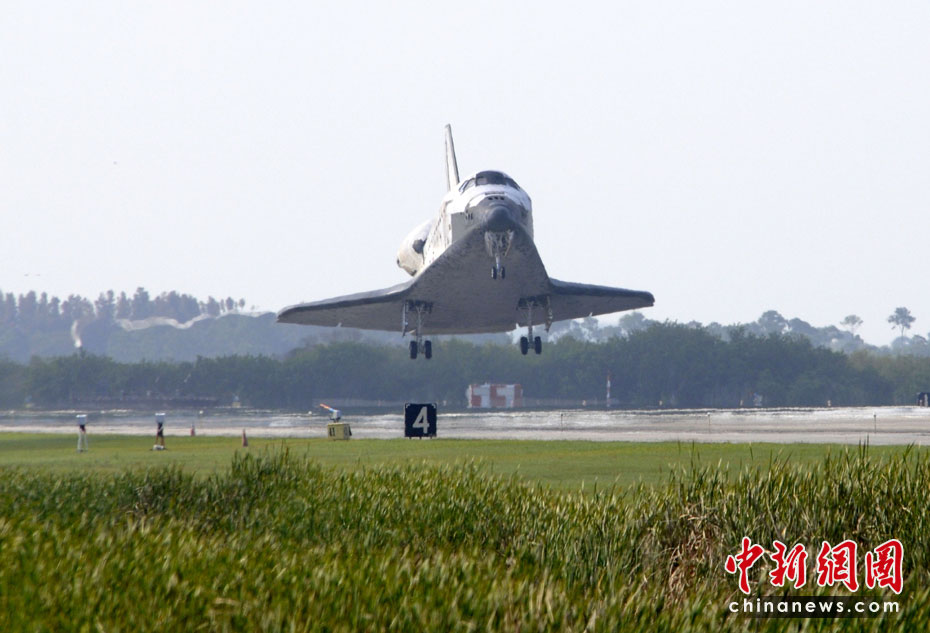 美國發現號航天飛機于當地時間4月20日成功降落在佛羅里達州肯尼迪航天中心,結束了為期15天的國際空間站建設之旅。圖片來源:中國新聞網