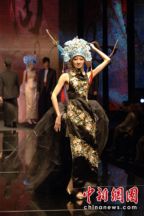 4月20日晚,首屆海西國際時(shí)裝周在福建石獅閉幕,本屆時(shí)裝周吸引了來自海峽兩岸的紡織服裝界企業(yè)家和知名服裝設(shè)計(jì)師。期間舉辦了12場時(shí)裝品牌和設(shè)計(jì)師作品動(dòng)態(tài)發(fā)布會(huì)。圖為模特展示古今潮流結(jié)合的服裝。王東明 攝