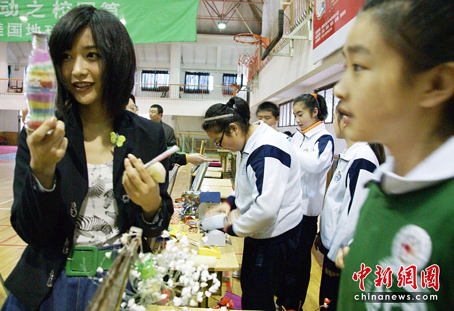 2010年4月22日,熱衷環(huán)保公益事業(yè)的影視明星田原等嘉賓應(yīng)邀參加北京育才學(xué)校的“低碳生活,從我做起--校園篇”啟動(dòng)儀式,與學(xué)生們一起探討“低碳”的生活方式。該活動(dòng)由北京紅十字會(huì)、根與芽北京辦公室、北京育才學(xué)校和美國地球日網(wǎng)絡(luò)聯(lián)合主辦,北京育才學(xué)校德育處承辦,北京育才學(xué)校紅十字少年、北京育才學(xué)校先農(nóng)壇根與芽小組實(shí)施。中新社發(fā) 馬小剛 攝