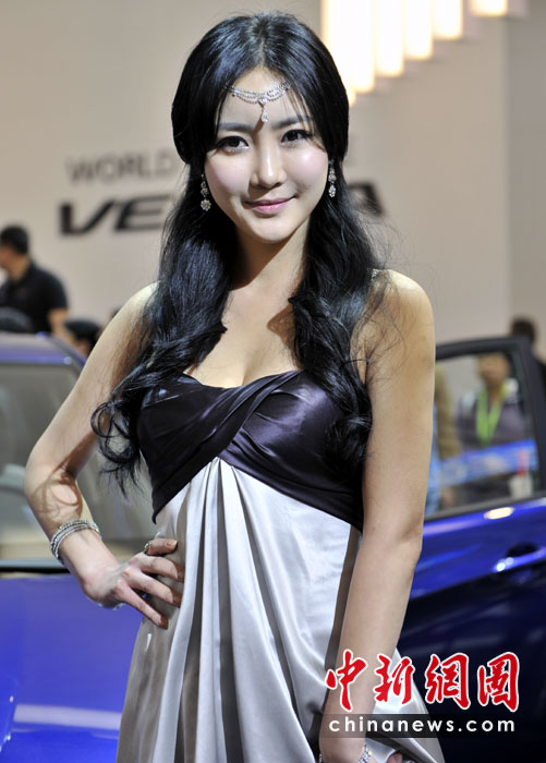 “第十一屆北京國際車展”是名車新品搶先亮相的舞臺,也成了車模們爭奇斗艷的場所,參觀者在車展中可以享受兩道視覺大餐。中新網記者 金碩 攝