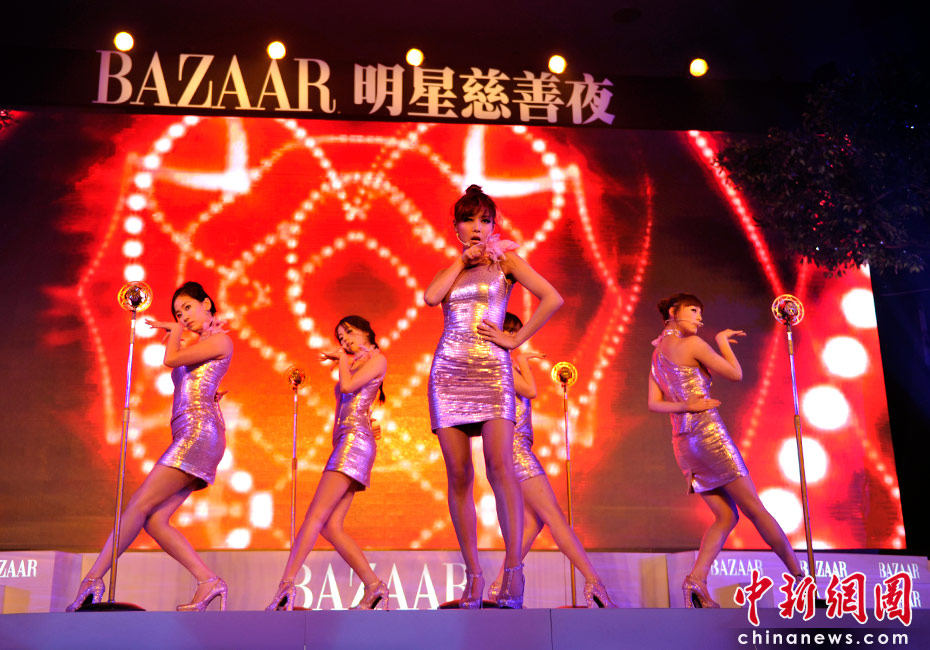 4月25日,由《時尚芭莎》雜志社主辦的第8屆“BAZAAR明星慈善夜”活動在上海舉行,圖為韓國少女組合Wonder Girl參加晚宴并現場演唱漢語版《nobody》。 中新網記者 金碩 攝