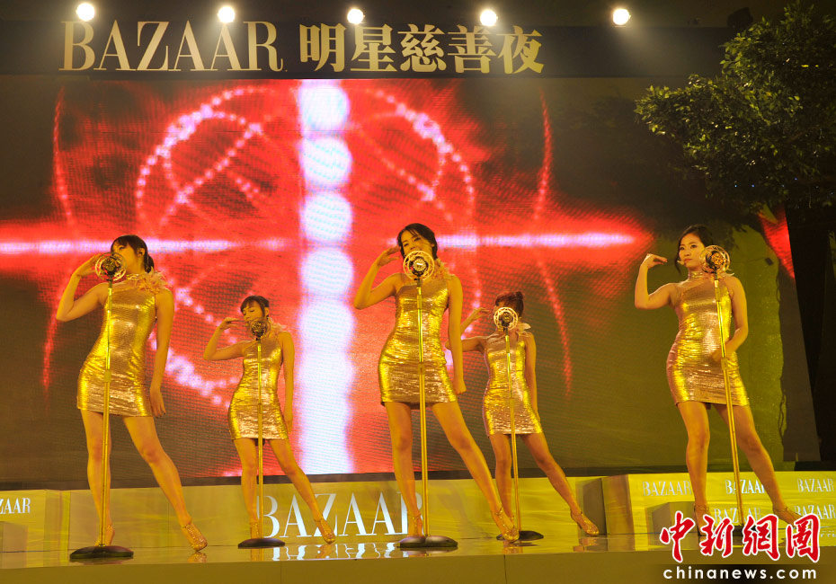 4月25日,由《時尚芭莎》雜志社主辦的第8屆“BAZAAR明星慈善夜”活動在上海舉行,圖為韓國少女組合Wonder Girl參加晚宴并現場演唱漢語版《nobody》。 中新網記者 金碩 攝