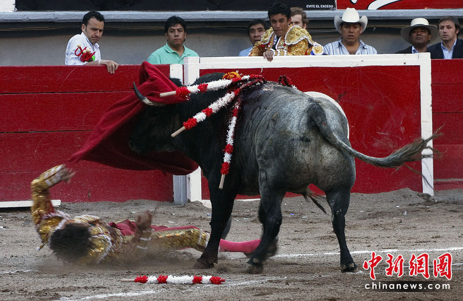 24日,西班牙知名斗牛士何塞·托馬斯在墨西哥斗牛時遭一頭公牛頂傷,神志不清。