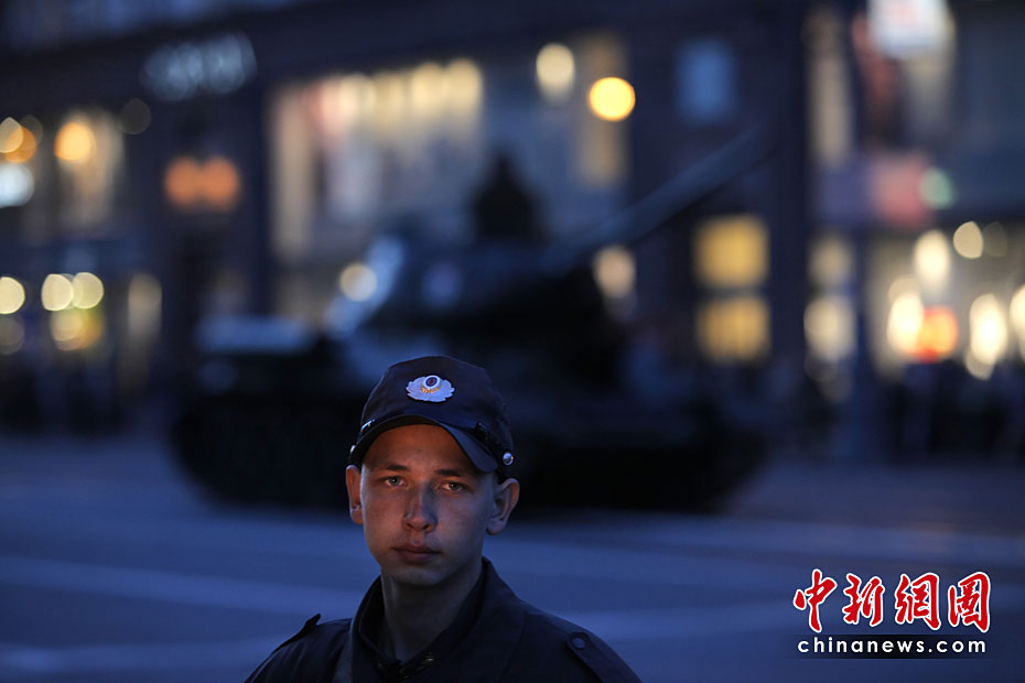 此次紅場閱兵包括兩部分內容:歷史部分和現代部分。歷史部分由身穿衛國戰爭時期軍服的士兵在鵝卵石道上進行,同時還會有9輛T-34坦克和8輛SU-100自行火炮,F代部分由13輛老虎裝甲車、BTR-80裝甲車、BMP-3步兵戰車、T-90A坦克和S-400防空系統等。圖片來源:中國新聞網