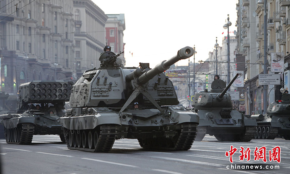 此次紅場(chǎng)閱兵包括兩部分內(nèi)容:歷史部分和現(xiàn)代部分。歷史部分由身穿衛(wèi)國(guó)戰(zhàn)爭(zhēng)時(shí)期軍服的士兵在鵝卵石道上進(jìn)行,同時(shí)還會(huì)有9輛T-34坦克和8輛SU-100自行火炮。現(xiàn)代部分由13輛老虎裝甲車、BTR-80裝甲車、BMP-3步兵戰(zhàn)車、T-90A坦克和S-400防空系統(tǒng)等。圖片來源:中國(guó)新聞網(wǎng)